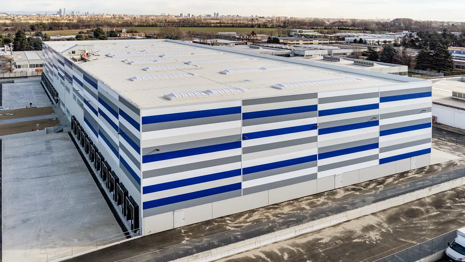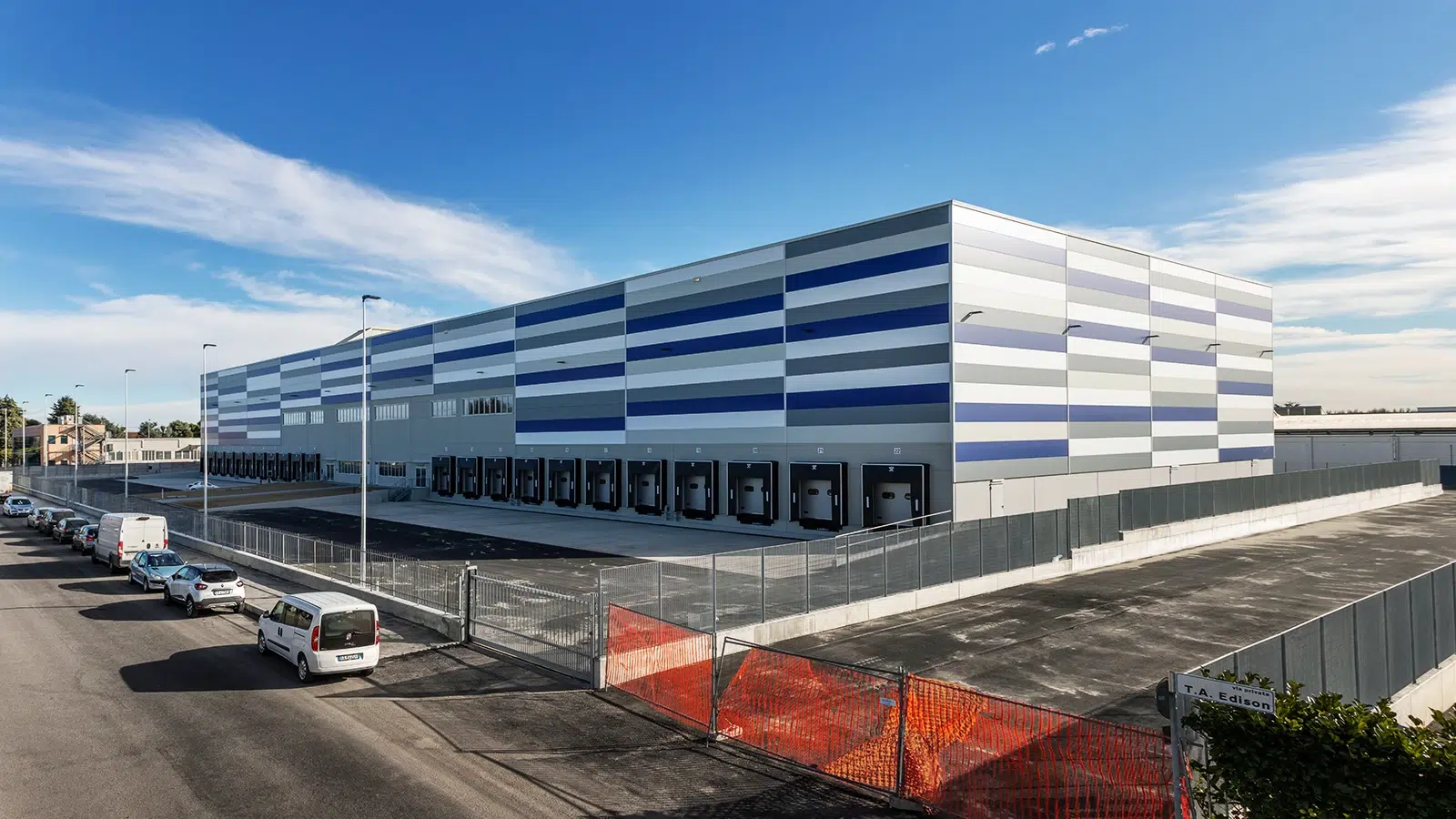 In Cusago, westlich von der Metropole Mailand gelegen, hat Engineering 2K ein Logistiklager mit funktionalen Bereichen, zertifizierten Anlagen und einer leistungsstarken Struktur errichtet. Das Lager bietet eine Fläche von 6.310 m2. Direkt daneben befinden sich Büros auf zwei Etagen: 180 m2 im Erdgeschoss und 430 m2 in der ersten Etage, insgesamt also 610 m2, die ganz der Verwaltung gewidmet sind.