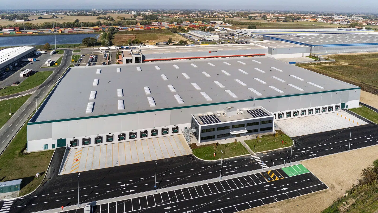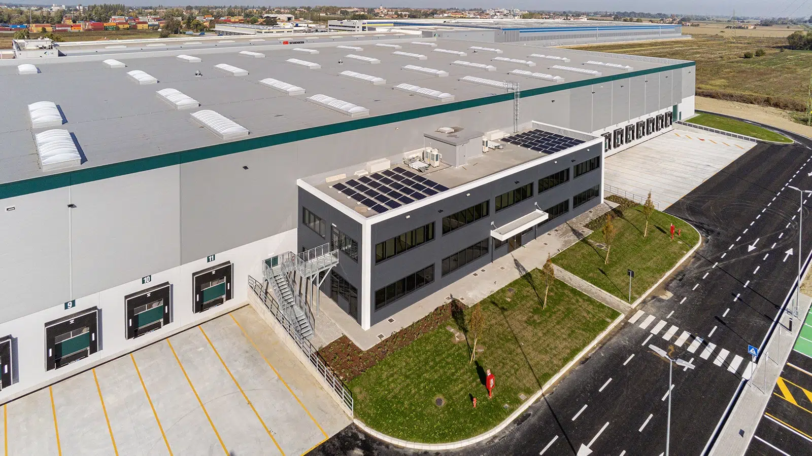 Se ha prestado particular atención a la eficiencia operativa: el edificio está equipado con 20 muelles de carga con plataformas electrohidráulicas, pensadas para facilitar las operaciones de manipulación de las mercancías, aumentar la productividad y reducir los tiempos de trabajo.