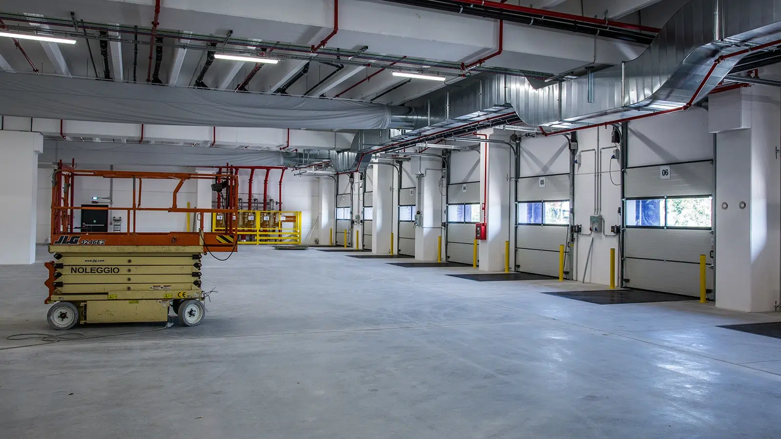 El almacén se desarrolla en 20.523 m² y se complementa con 1.175 m² de oficinas que actúan como centro de coordinación operativa. Las 10 plataformas electrohidráulicas garantizan operaciones de carga y descarga rápidas y eficientes, mientras que el sistema de sprinkler, conforme a la norma NFPA, garantiza altos estándares de seguridad.