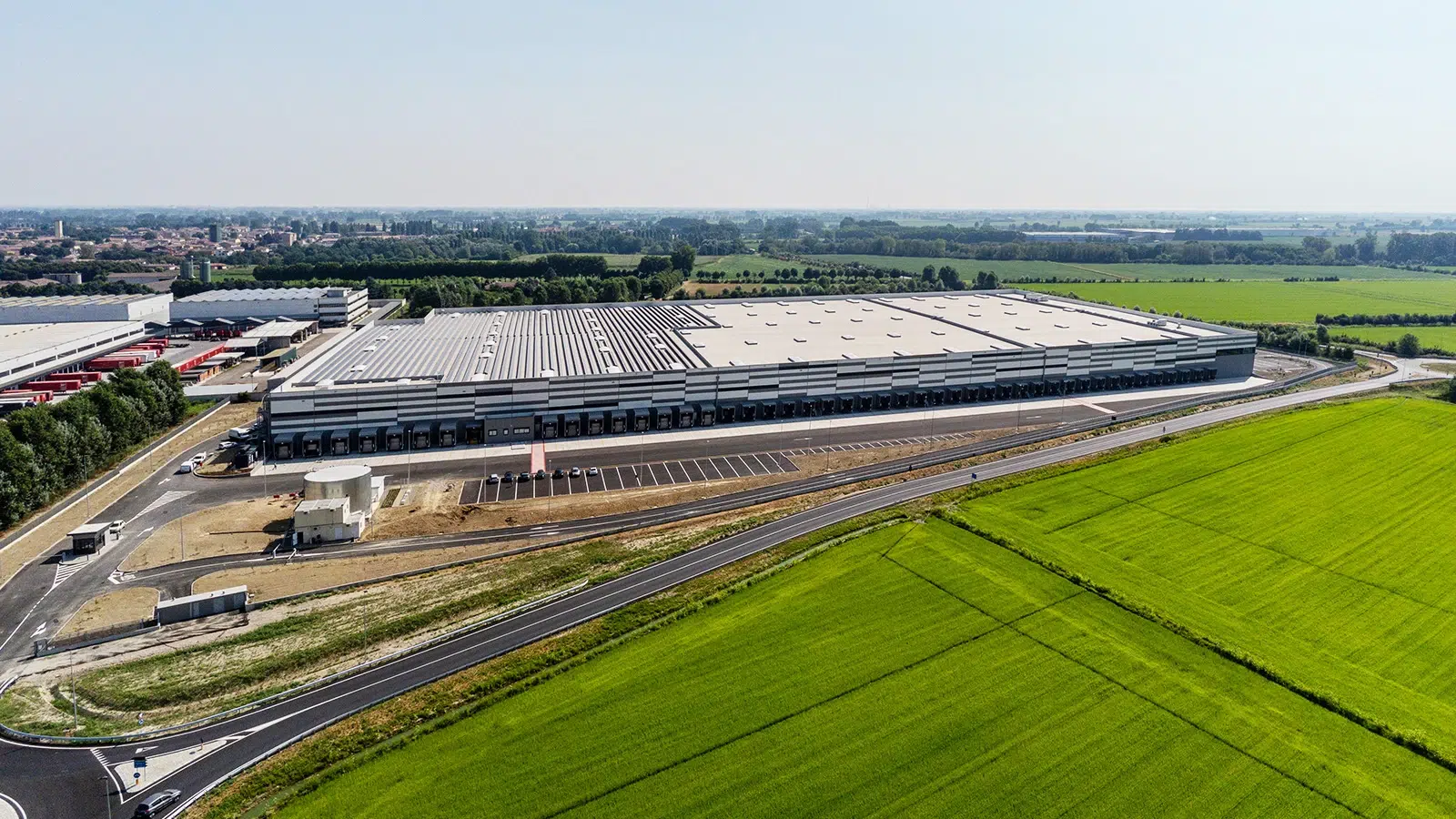 En Landriano, provincia de Pavía, Engineering 2K ha construido el edificio C. El inmueble ocupa una superficie total de 55.455 m², de los que 51.590 están dedicados a almacén y 3.865 a oficinas, distribuidas de forma racional para optimizar la coordinación entre las actividades del almacén y la gestión empresarial.