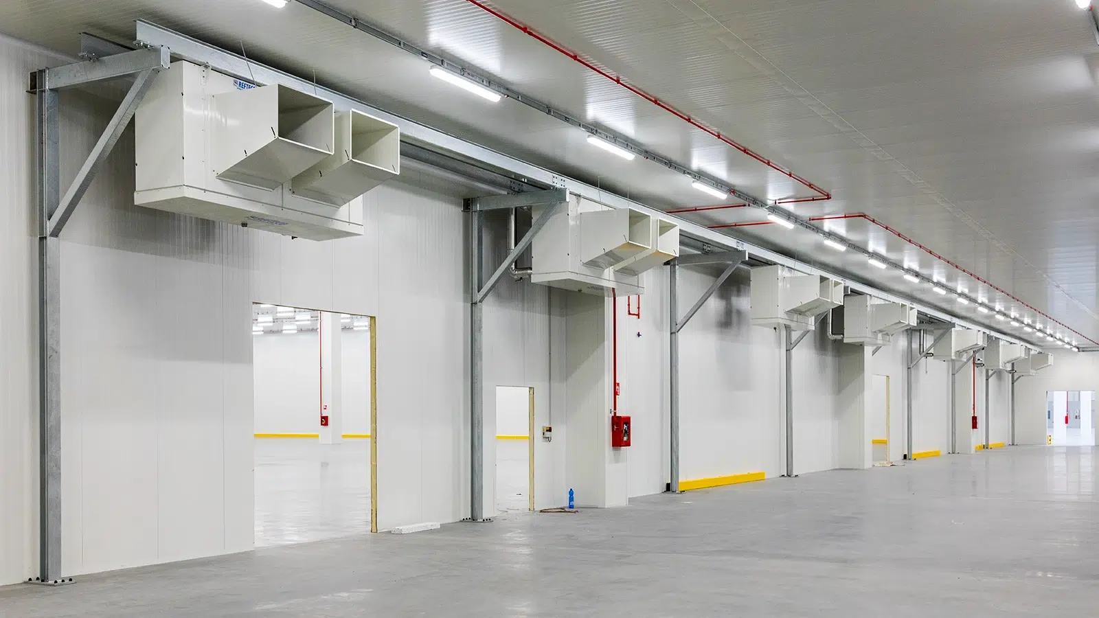 Para mejorar aún más el rendimiento de la estructura, 86 plataformas electrohidráulicas garantizan un flujo constante de carga y descarga, reduciendo los tiempos de espera y maximizando la productividad diaria. En cuanto a la seguridad, el edificio está equipado con un sistema de sprinkler conforme a la normativa NFPA, lo que garantiza la protección de personas, mercancías e infraestructura.